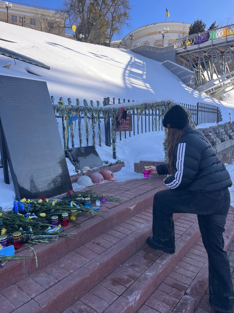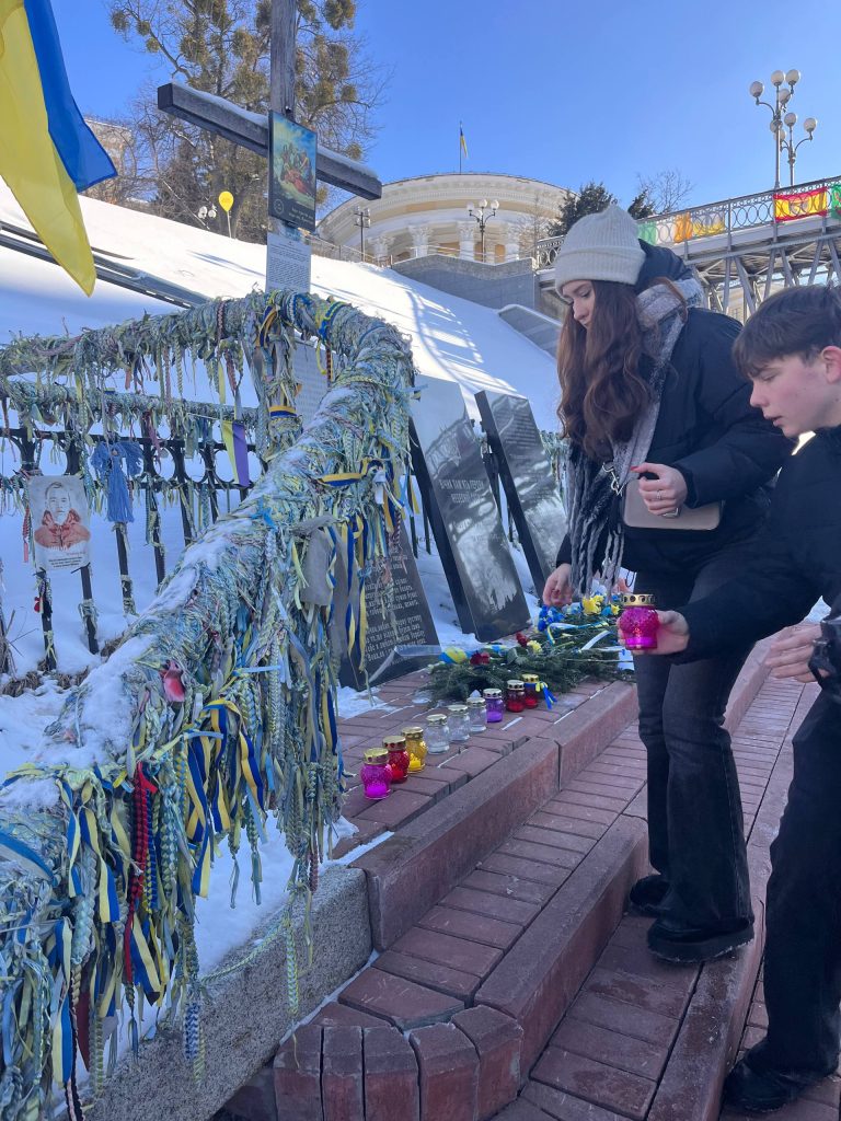 Представники учнівського самоврядування відвідали Алею Героїв Небесної Сотні на Майдані Незалежності, де вшанували пам’ять загиблих хвилиною мовчання та запалили лампадки пам’яті. У серцях кожного бриніли слова вдячності тим, хто став щитом для України.